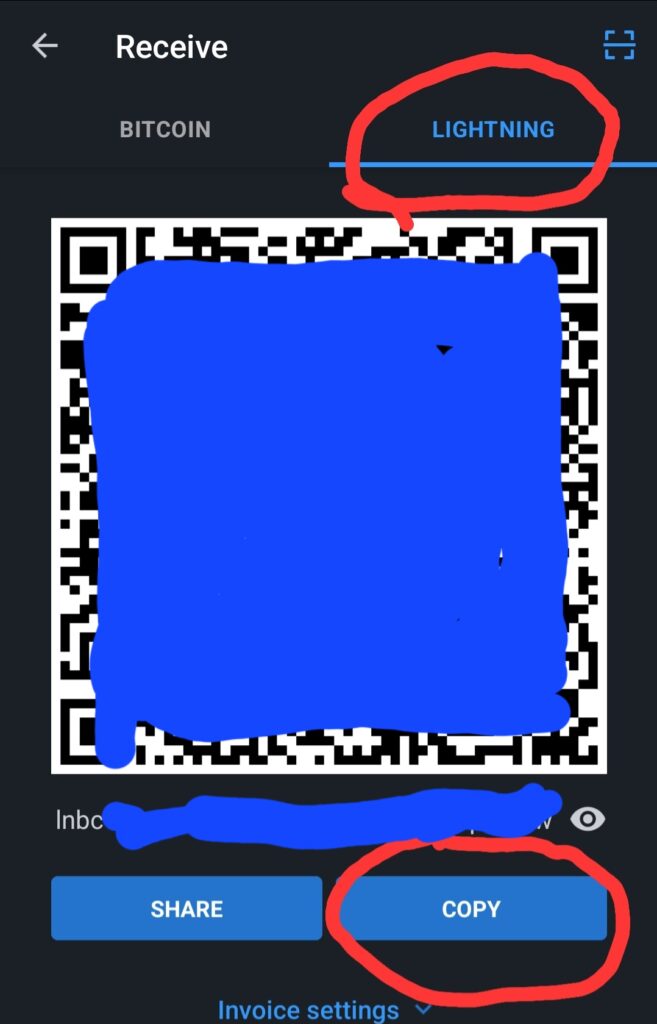 ウォレットを作ったらライトニングネットワークのアドレスをコピーします。