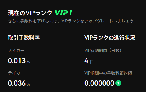 さらに、以下のリンクから登録すると自動的にVIP1にアップグレードされ、取引手数料が割引になります。