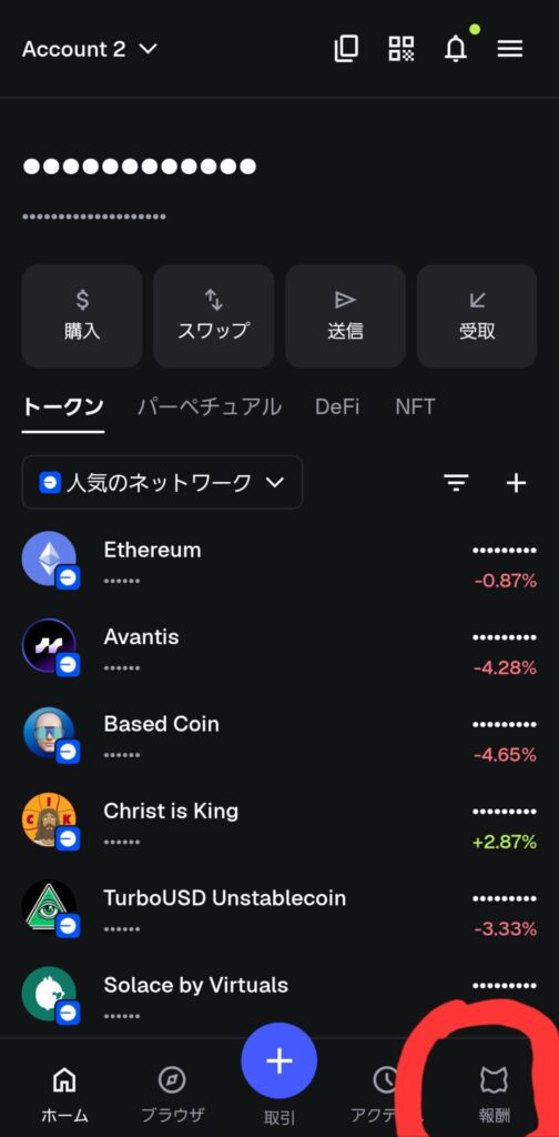2. 報酬タブからポイント確認