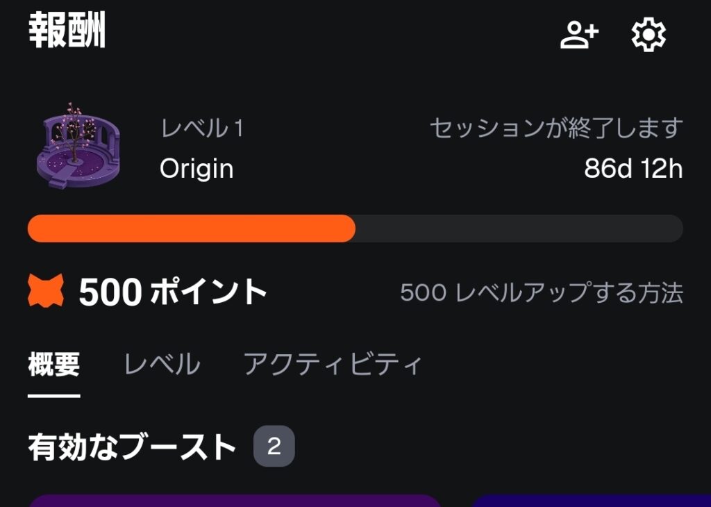 • レベルアップで報酬と特典を解放