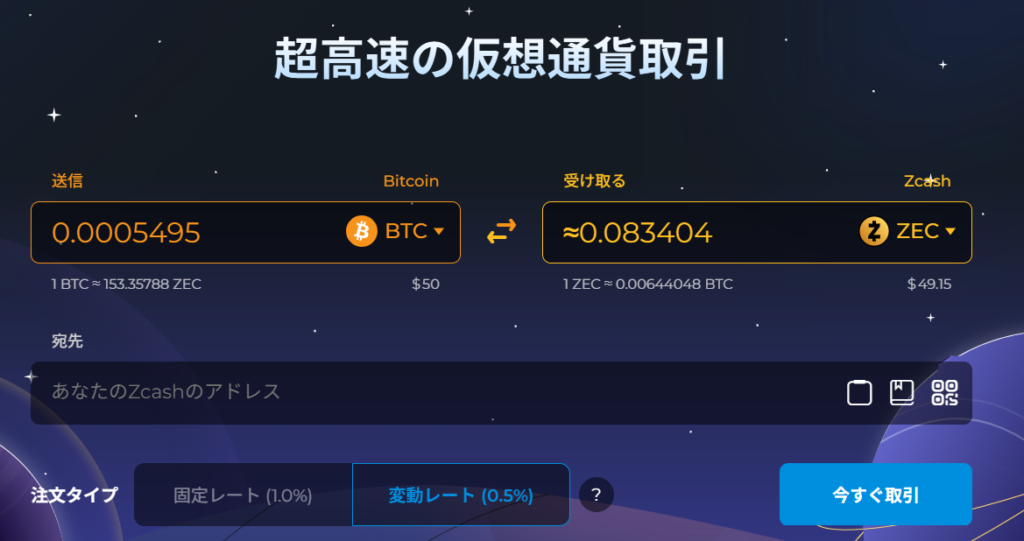 方法②:FixedFloatで直接ZECに交換(KYC不要)