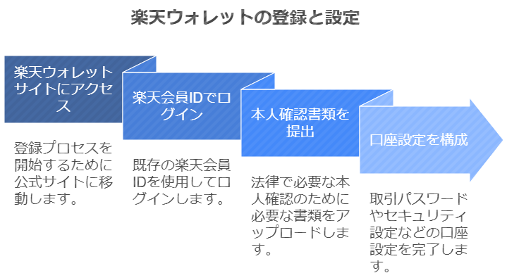 - 楽天ウォレットの登録手続きは簡単で、楽天IDを利用してスムーズに開始できる