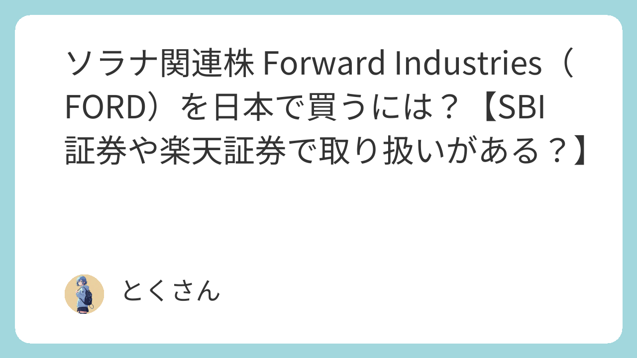 - ソラナ連動の Forward Industries(FORD)